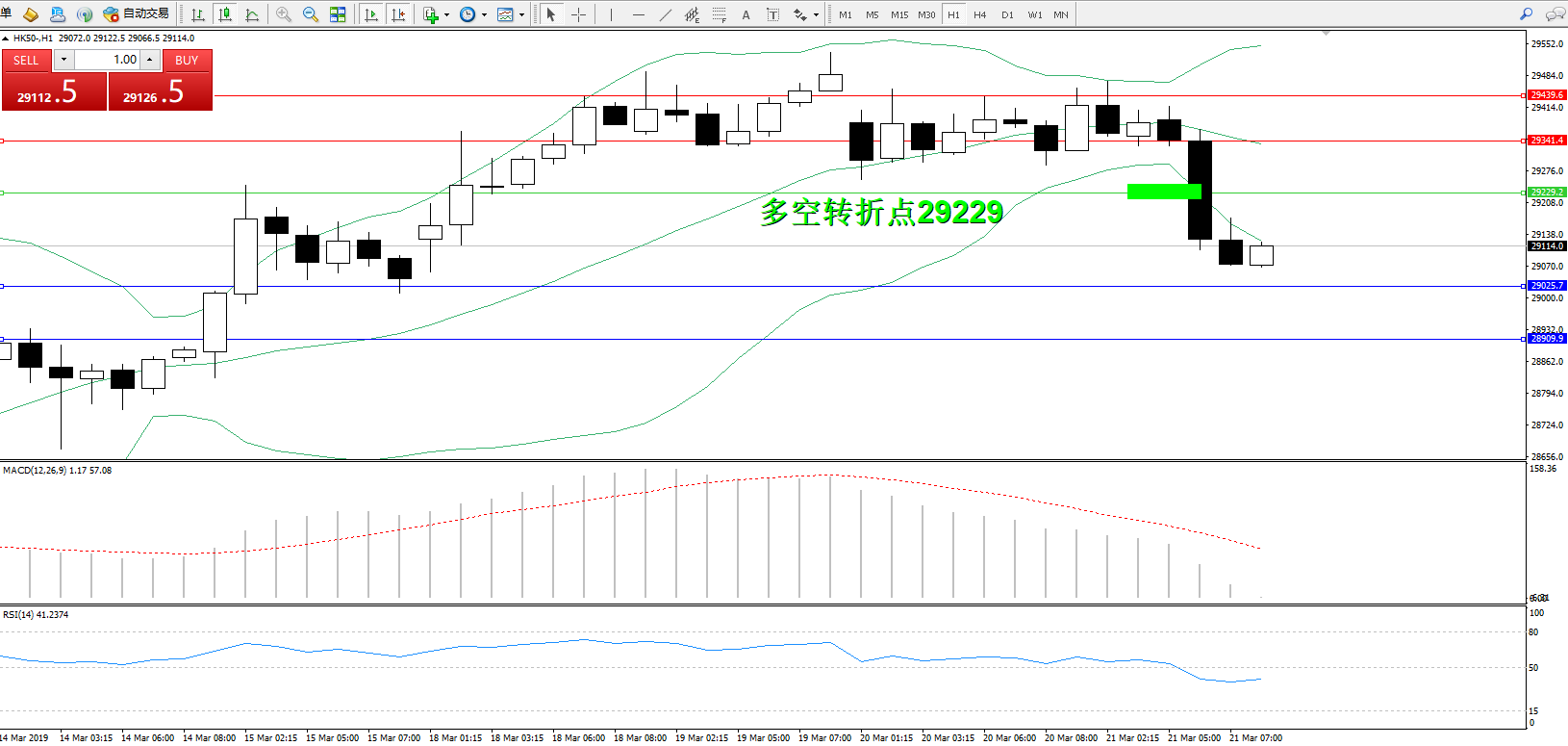恒指HK50 ——1小时K线图显示: