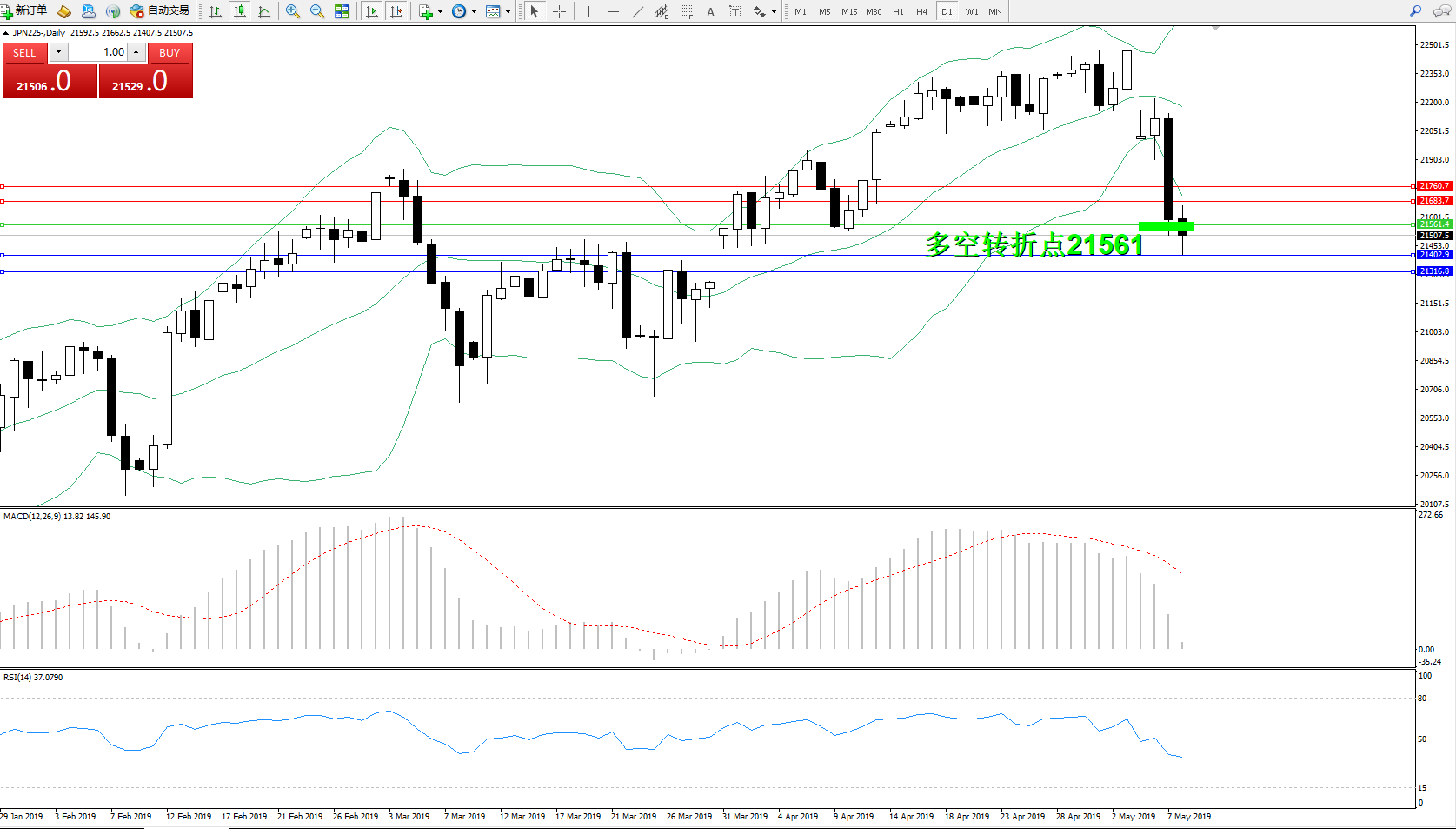 技术点评:高位急挫下行,空头动力尚未结束,跌破布林带下轨后尚未出现反转回归内部走势迹象,MACD指标回撤至0轴线附近,RSI指标跌破50均衡线进入空头区域继续下行;
