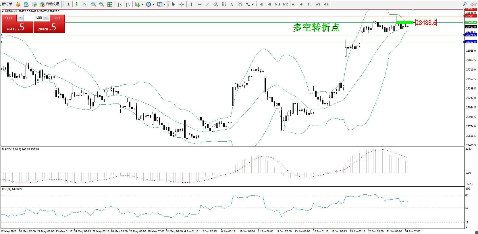 恒指HK50 ——1小时K线图显示: