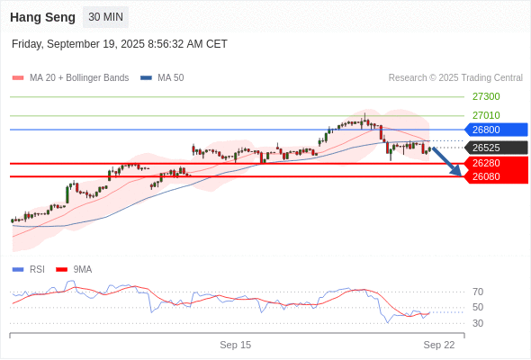 在 26800 之下,看跌,目标价位为 26280 ,然后为 26080 。