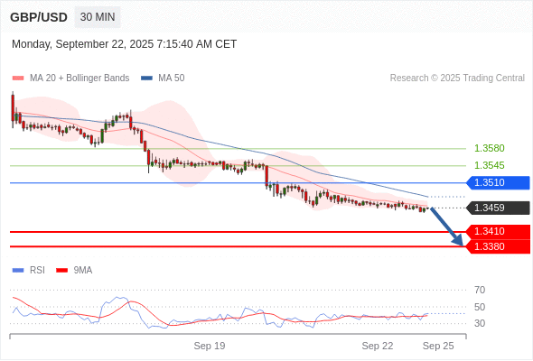 在 1.3510 之下,看跌,目标价位为 1.3410 ,然后为 1.3380 。
