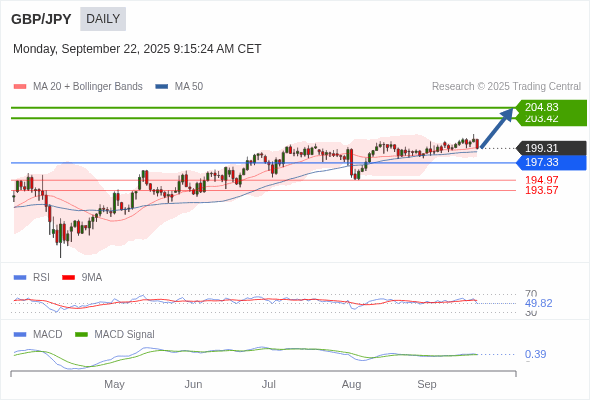 英镑/日元 短线 : 目标为 204.83。