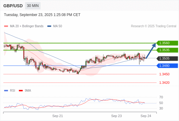 在 1.3480 之上,看涨,目标价位为 1.3535 ,然后为 1.3560 。