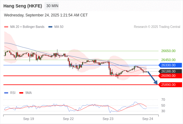 在 26330.00 之下,看跌,目标价位为 26090.00 ,然后为 25890.00 。