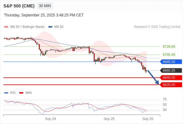交易策略: 在 6685.00 之下,看跌,目标价位为 6640.00 ,然后为 6620.00 。