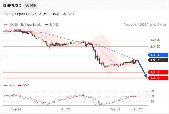 在 1.3390 之下,看跌,目标价位为 1.3300 ,然后为 1.3270 。