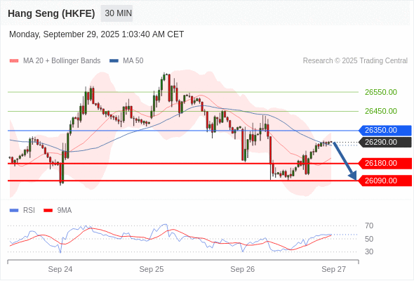 香港恒生指数期货 当日内: 短期关键阻力位在26350.00。