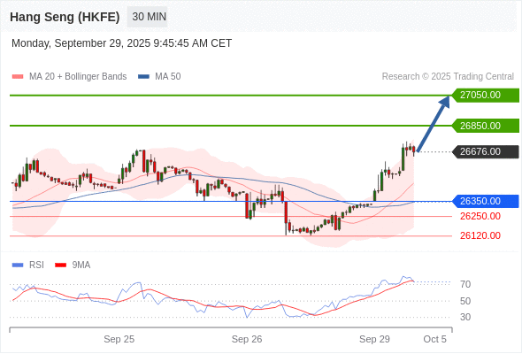 在 26350.00 之上,看涨,目标价位为 26850.00 ,然后为 27050.00 。