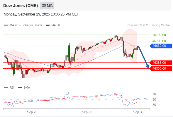 在 46630.00 之下,看跌,目标价位为 46385.00 ,然后为 46300.00 。