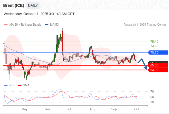 交易策略: 在 70.70 之下,看跌,目标价位为 65.00 ,然后为 63.00 。