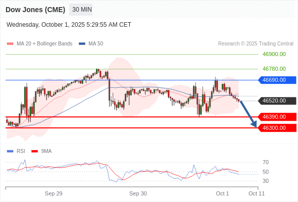 在 46690.00 之下,看跌,目标价位为 46390.00 ,然后为 46300.00 。