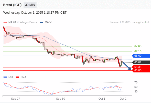在 66.60 之下,看跌,目标价位为 65.35 ,然后为 65.00 。
