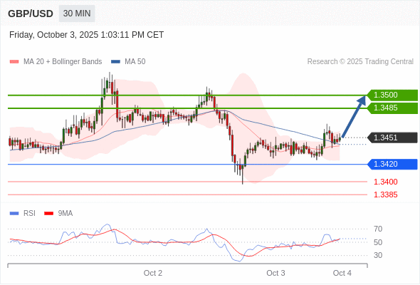 在 1.3420 之上,看涨,目标价位为 1.3485 ,然后为 1.3500 。