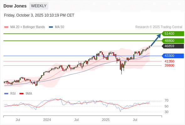 在 43300 之上,看涨,目标价位为 48800 ,然后为 51400 。