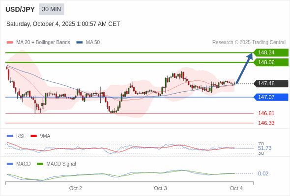 首页 > > 美元/日元 当日内 : 看涨,当 147.07 为支撑位。