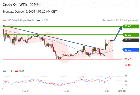 在 61.10 之上,看涨,目标价位为 62.20 ,然后为 62.80 。