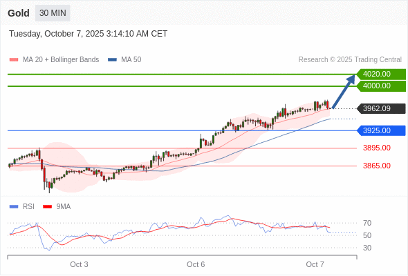 在 3925.00 之上,看涨,目标价位为 4000.00 ,然后为 4020.00 。