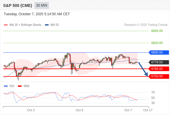 交易策略: 在 6800.00 之下,看跌,目标价位为 6766.00 ,然后为 6750.00 。