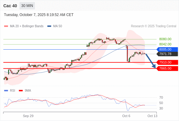 在 8005.00 之下,看跌,目标价位为 7910.00 ,然后为 7865.00 。