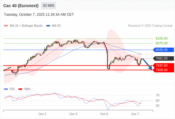 在 8035.00 之下,看跌,目标价位为 7937.00 ,然后为 7909.00 。