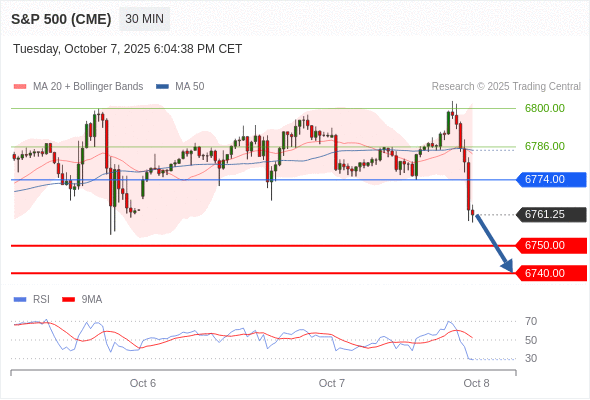 在 6774.00 之下,看跌,目标价位为 6750.00 ,然后为 6740.00 。