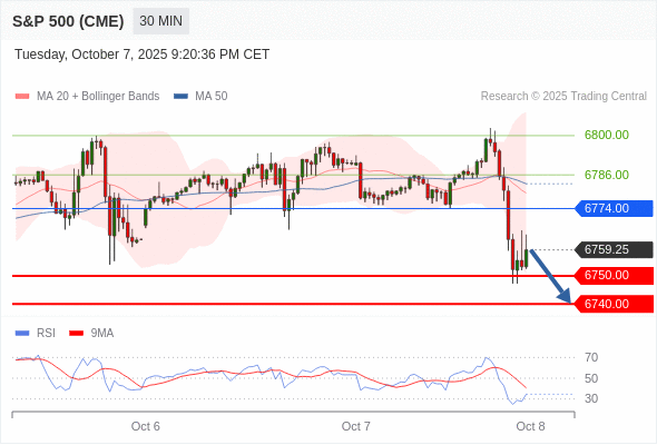在 6774.00 之下,看跌,目标价位为 6750.00 ,然后为 6740.00 。