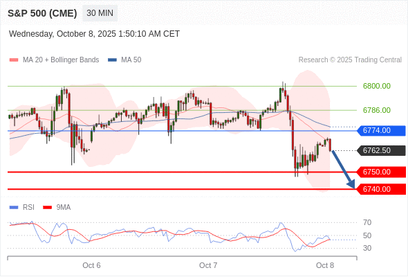 交易策略: 在 6774.00 之下,看跌,目标价位为 6750.00 ,然后为 6740.00 。