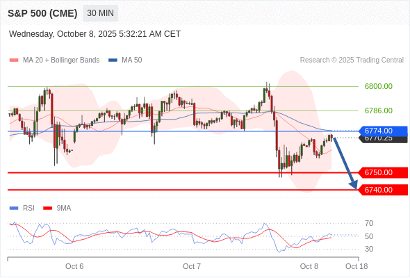 交易策略: 在 6774.00 之下,看跌,目标价位为 6750.00 ,然后为 6740.00 。