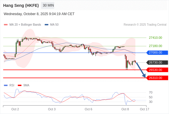在 27000.00 之下,看跌,目标价位为 26530.00 ,然后为 26310.00 。