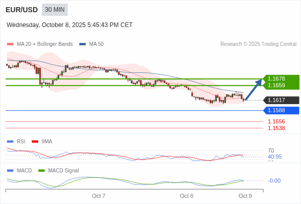 替代方案: 在1.1588以下,期待1.1556和1.1538。