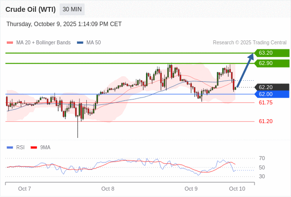 在 62.00 之上,看涨,目标价位为 62.90 ,然后为 63.20 。