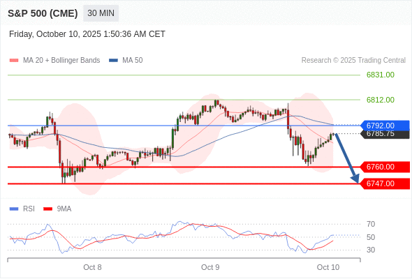 交易策略: 在 6792.00 之下,看跌,目标价位为 6760.00 ,然后为 6747.00 。