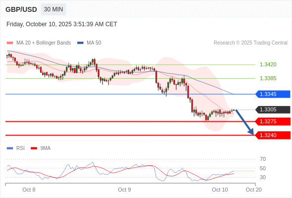 在 1.3345 之下,看跌,目标价位为 1.3275 ,然后为 1.3240 。