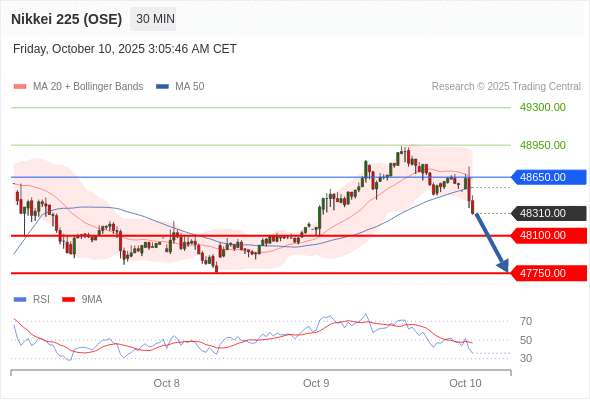在 48650.00 之下,看跌,目标价位为 48100.00 ,然后为 47750.00 。