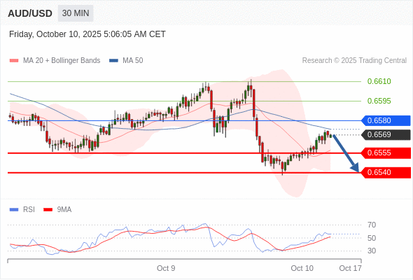 在 0.6580 之下,看跌,目标价位为 0.6555 ,然后为 0.6540 。