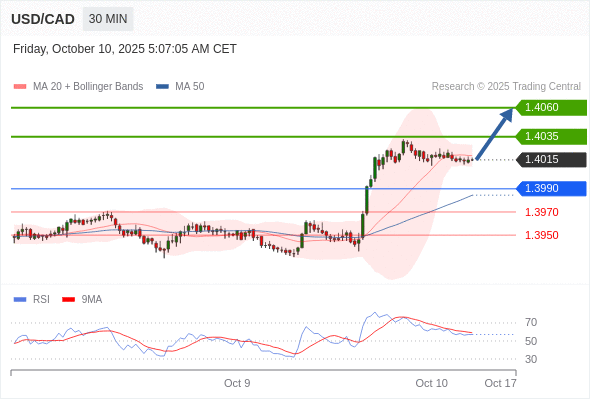 在 1.3990 之上,看涨,目标价位为 1.4035 ,然后为 1.4060 。