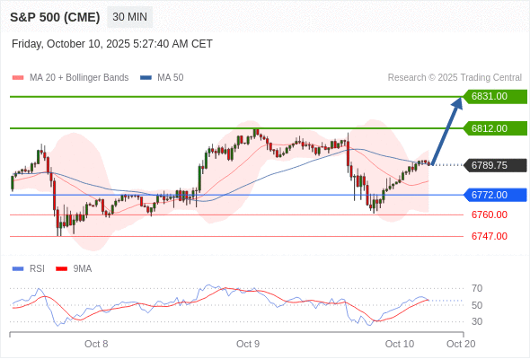 在 6772.00 之上,看涨,目标价位为 6812.00 ,然后为 6831.00 。