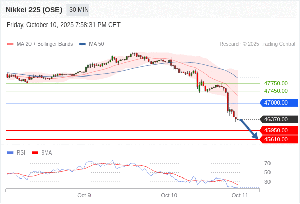 在 47000.00 之下,看跌,目标价位为 45950.00 ,然后为 45610.00 。