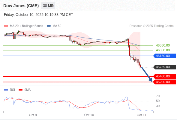 在 46150.00 之下,看跌,目标价位为 45400.00 ,然后为 45200.00 。