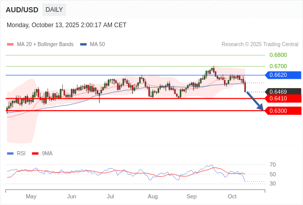 交易策略: 在 0.6620 之下,看跌,目标价位为 0.6410 ,然后为 0.6300 。