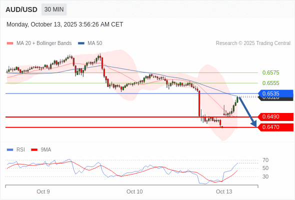 交易策略: 在 0.6535 之下,看跌,目标价位为 0.6490 ,然后为 0.6470 。