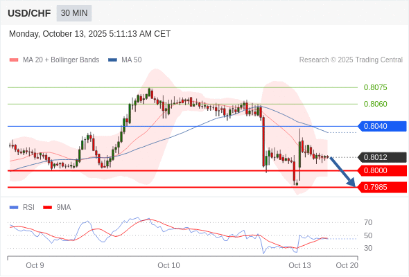 在 0.8040 之下,看跌,目标价位为 0.8000 ,然后为 0.7985 。