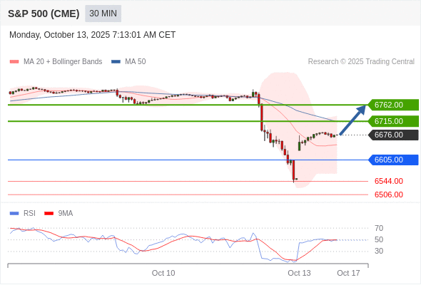 在 6605.00 之上,看涨,目标价位为 6715.00 ,然后为 6762.00 。