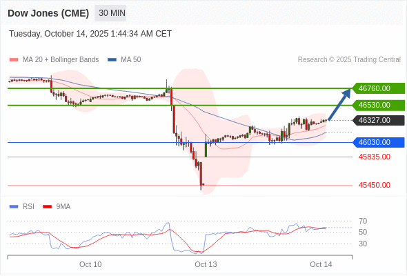 在 46030.00 之上,看涨,目标价位为 46530.00 ,然后为 46760.00 。