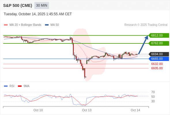 在 6665.00 之上,看涨,目标价位为 6762.00 ,然后为 6812.00 。