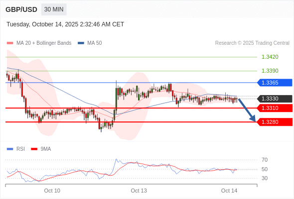 在 1.3365 之下,看跌,目标价位为 1.3310 ,然后为 1.3280 。