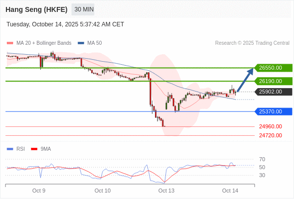 香港恒生指数期货 当日内: 超短线(当日内)支撑位在25370.00附近。