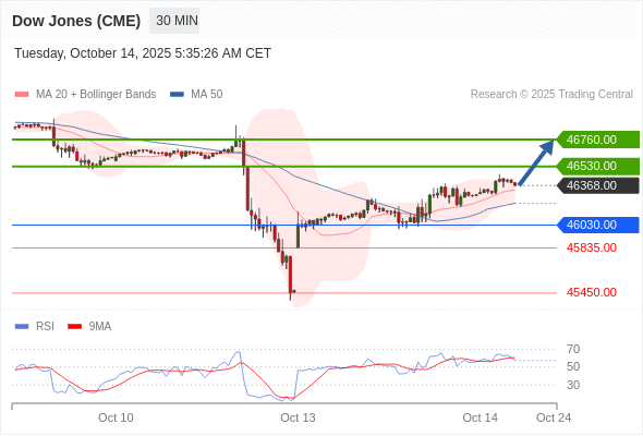在 46030.00 之上,看涨,目标价位为 46530.00 ,然后为 46760.00 。