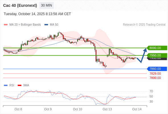 在 7860.00 之上,看涨,目标价位为 7950.00 ,然后为 8000.00 。