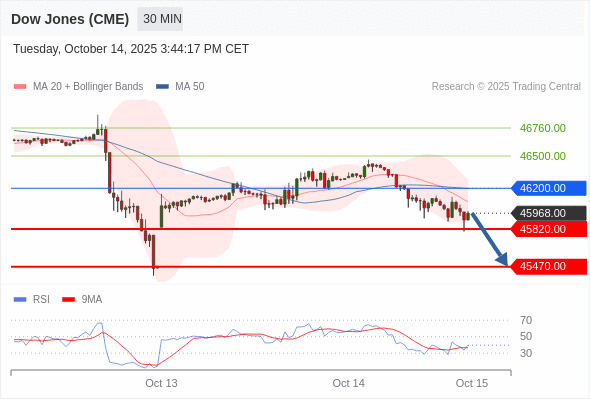 在 46200.00 之下,看跌,目标价位为 45820.00 ,然后为 45470.00 。